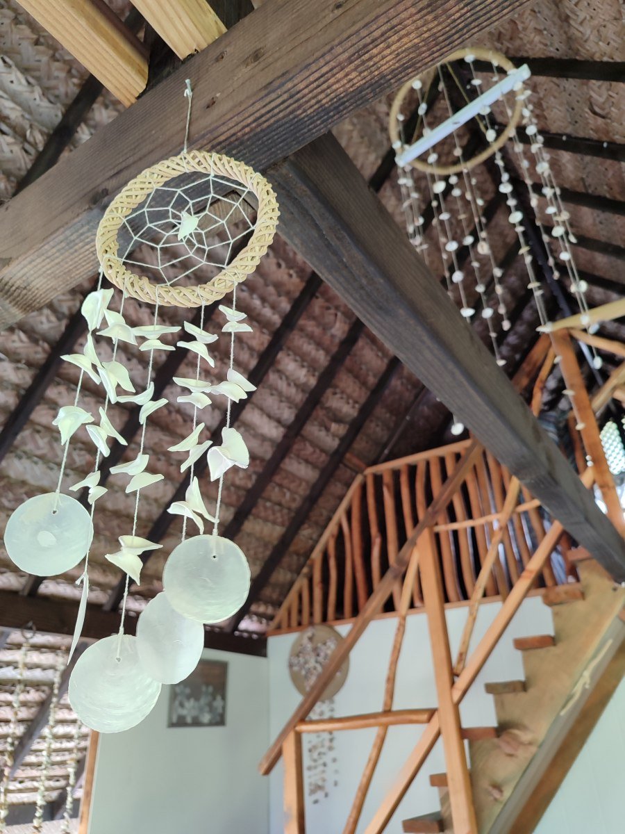 - Architecture traditionnelle polynésienne : toit en pandanus, matériaux naturels, charme local